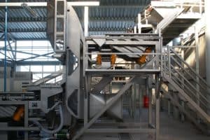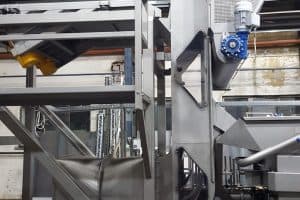 Eine Austragsschnecke sammelt alle Abfälle in einem Ausgabepunkt.