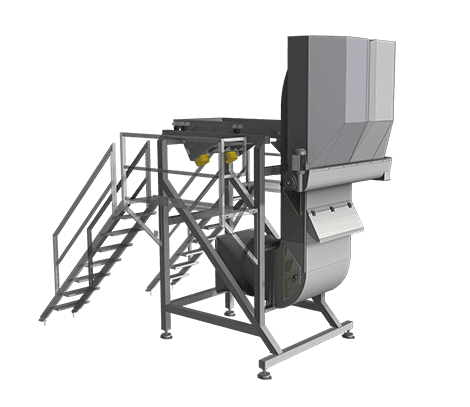 Der Vibrationsförderer sorgt für eine gleichmäßige Zuführung und wirksame Reinigung, mit 2 Sieben (optional) zum Entfernen großer und kleiner Teile.