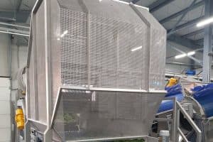Ispanak yaprağı kümelerini ayıran kaskatlı ve pimli yüksek genlikli titreşimli besleyici.