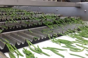 Yeşil fasulyenin uzunluk kalibrasyonu için titreşimli uzunluk kalibre edici.