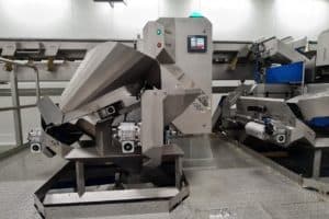 Automatic sweet corn cutter for automatic kernel cutting. Advanced automatic system with camera-based orientation and cutting.